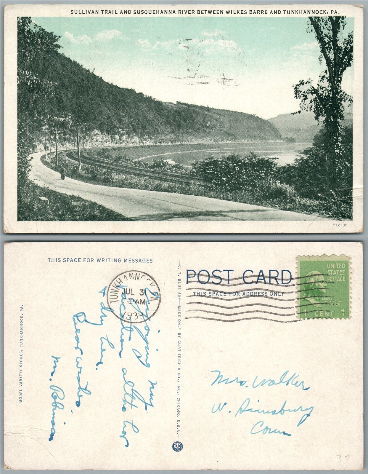 SULLIVAN TRIAL SUSQUEHANNA RIVER WILKES-BARRE TUNKHANNOCK 1939 VINTAGE POSTCARD