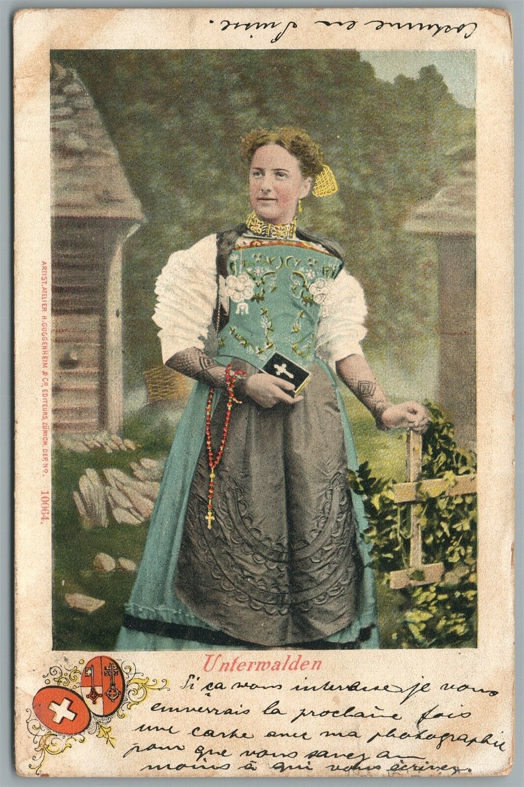 SWITZERLAND UNTERMALDEN ANTIQUE POSTCARD w/ STAMPS