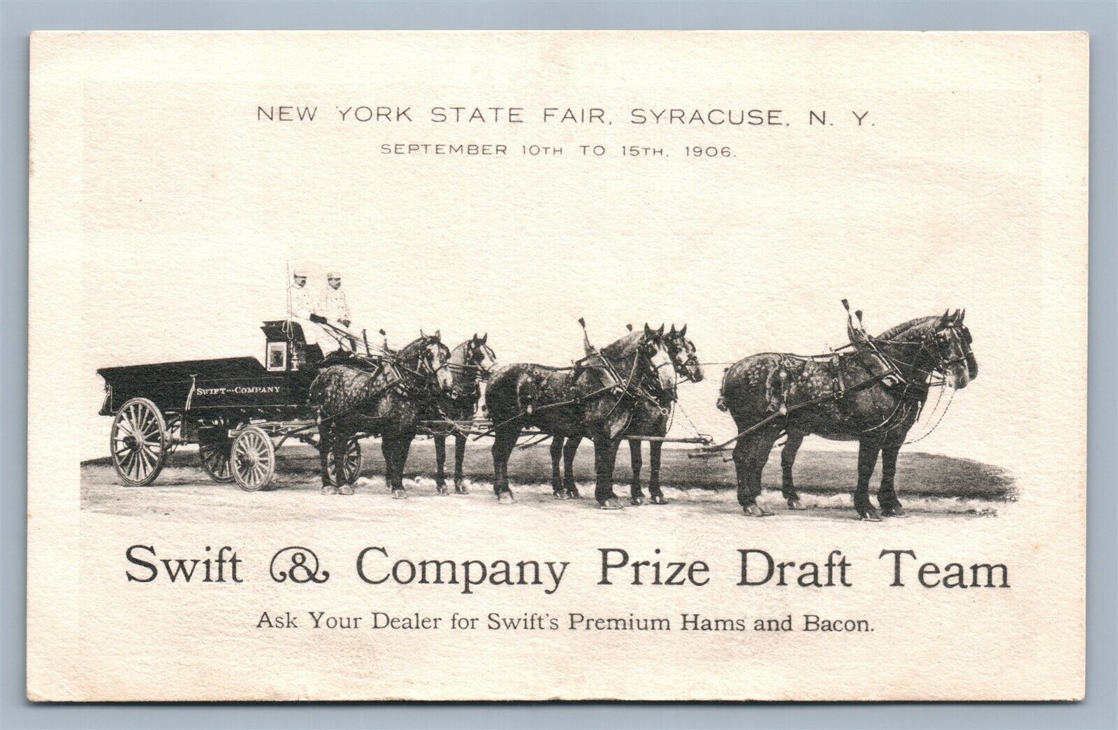 SYRACUSE NY SWIFT & CO DRAFT TEAM HAMS & BACON ADVERTISING ANTIQUE POSTCARD