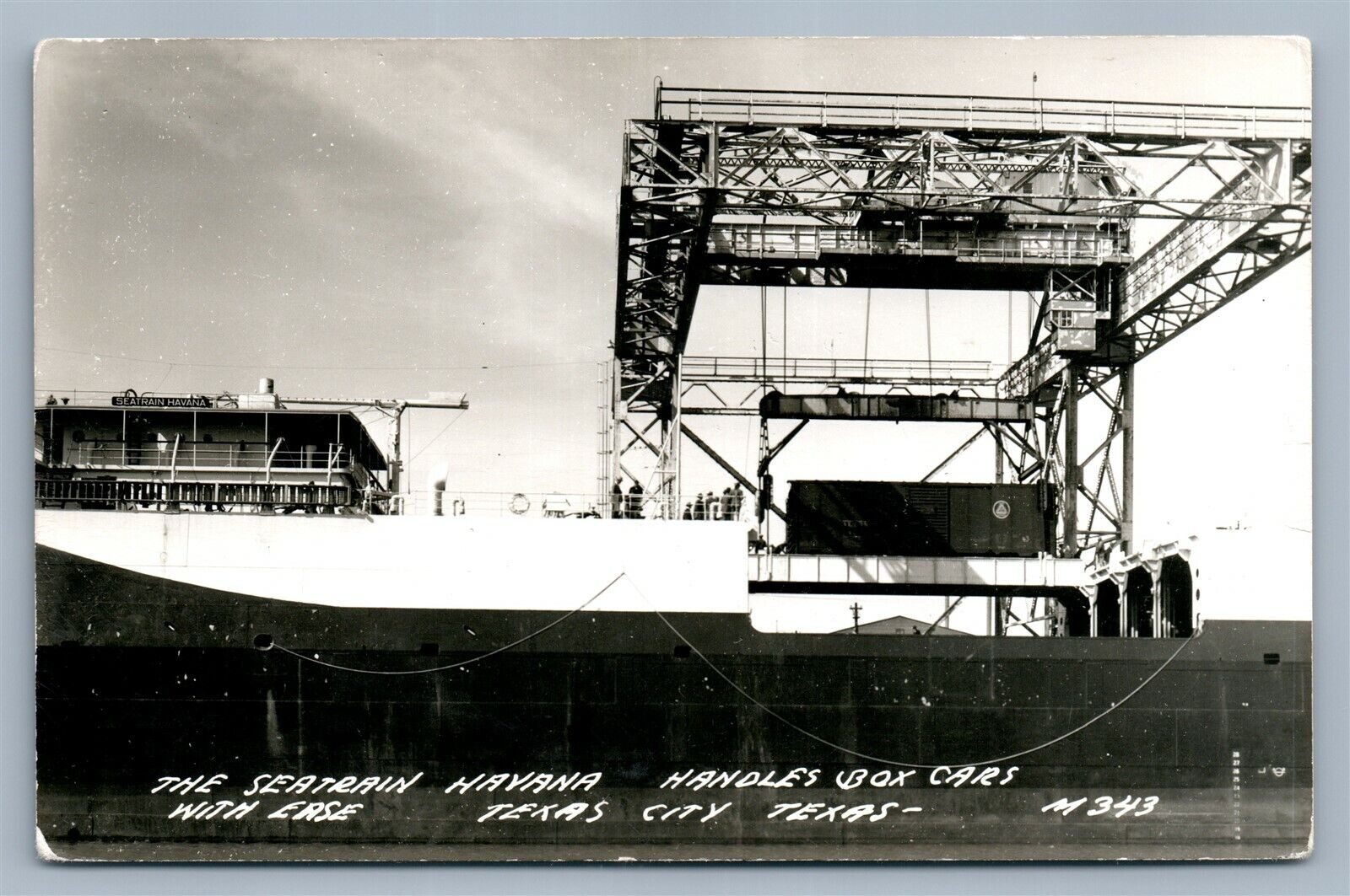 TEXAS CITY TX SEATRAIN HAYANA HANDLES BOX CARS VINTAGE REAL PHOTO POSTCARD RPPC