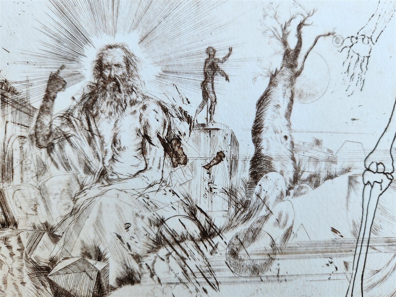 THE CREATION OF THE HUMAN RACE surreal PRINT vintage w/ SKELETON