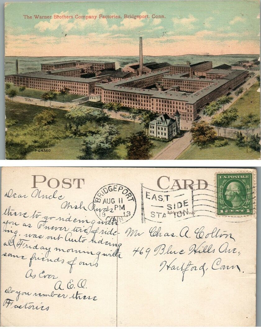 THE WARNER BROTHERS COMPANY FACTORIES BRIDGEPORT CT 1913 ANTIQUE POSTCARD