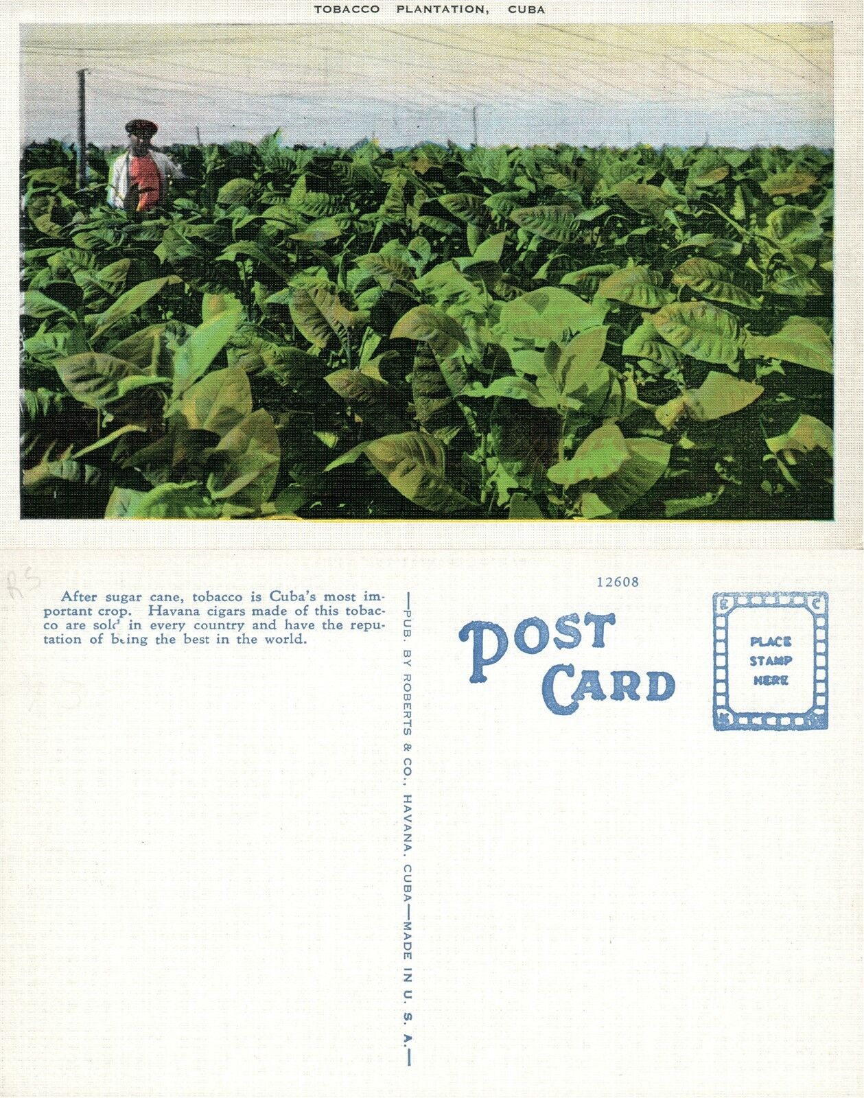 TOBACCO PLANTATION CUBA ANTIQUE POSTCARD