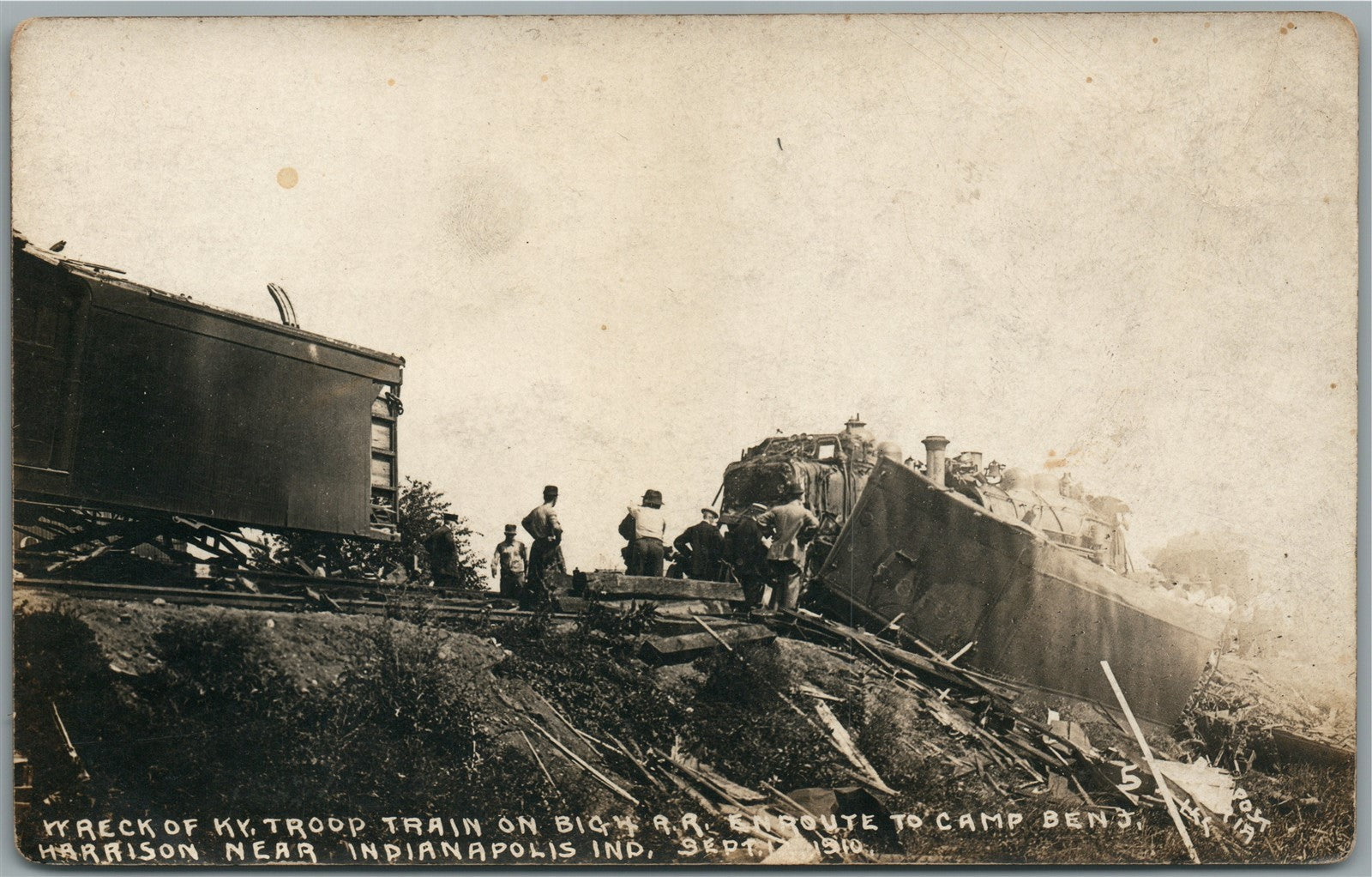 TRAIN WRECK INDIANAPOLIS & CAMP B.HARRISON IN ANTIQUE REAL PHOTO POSTCARD RPPC