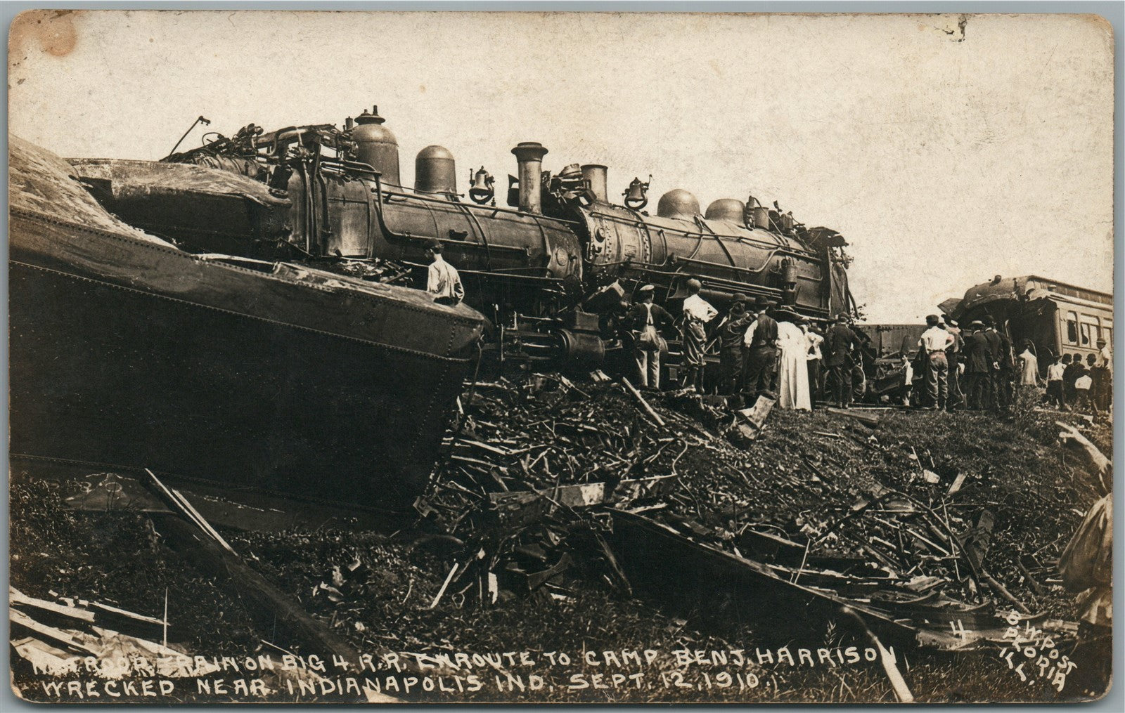 TRAIN WRECK NEAR INDIANAPOLIS IN ANTIQUE REAL PHOTO POSTCARD RPPC