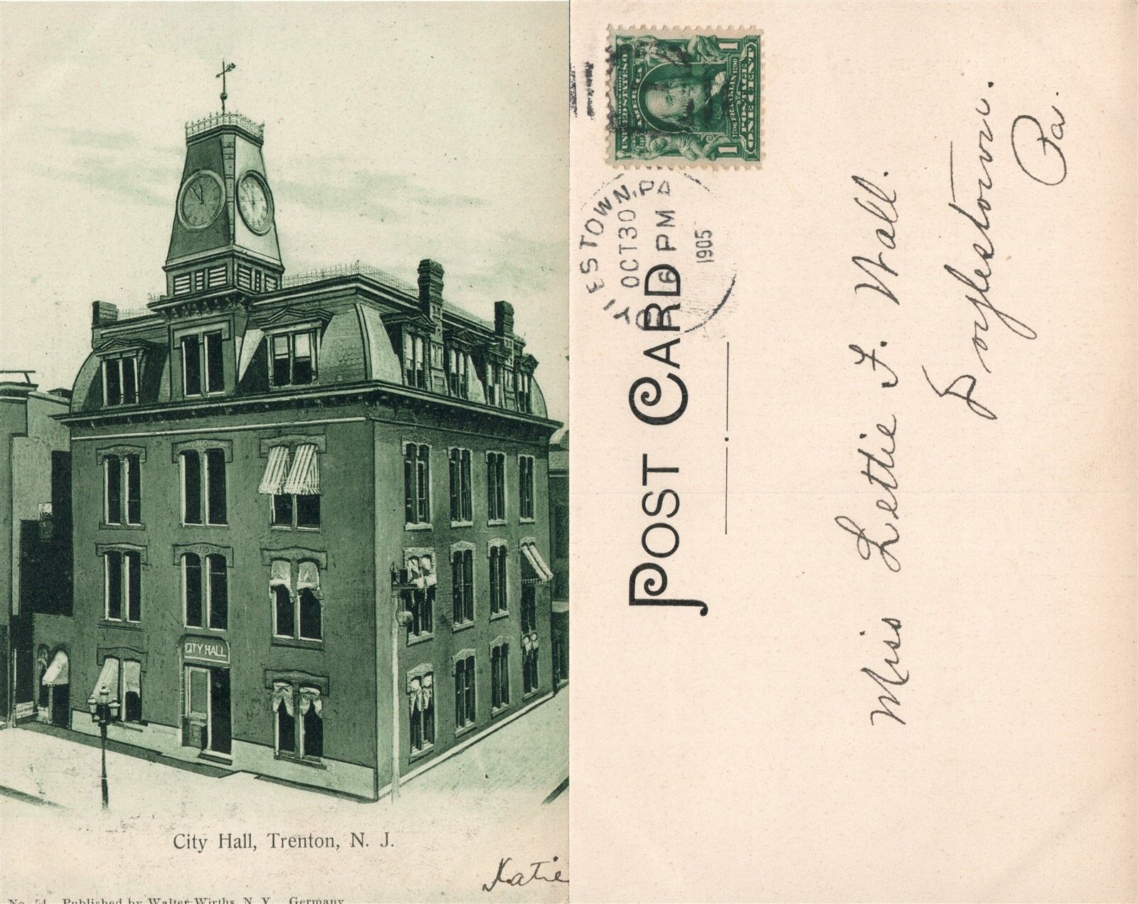 TRENTON N.J. CITY HALL 1905 UNDIVIDED ANTIQUE POSTCARD