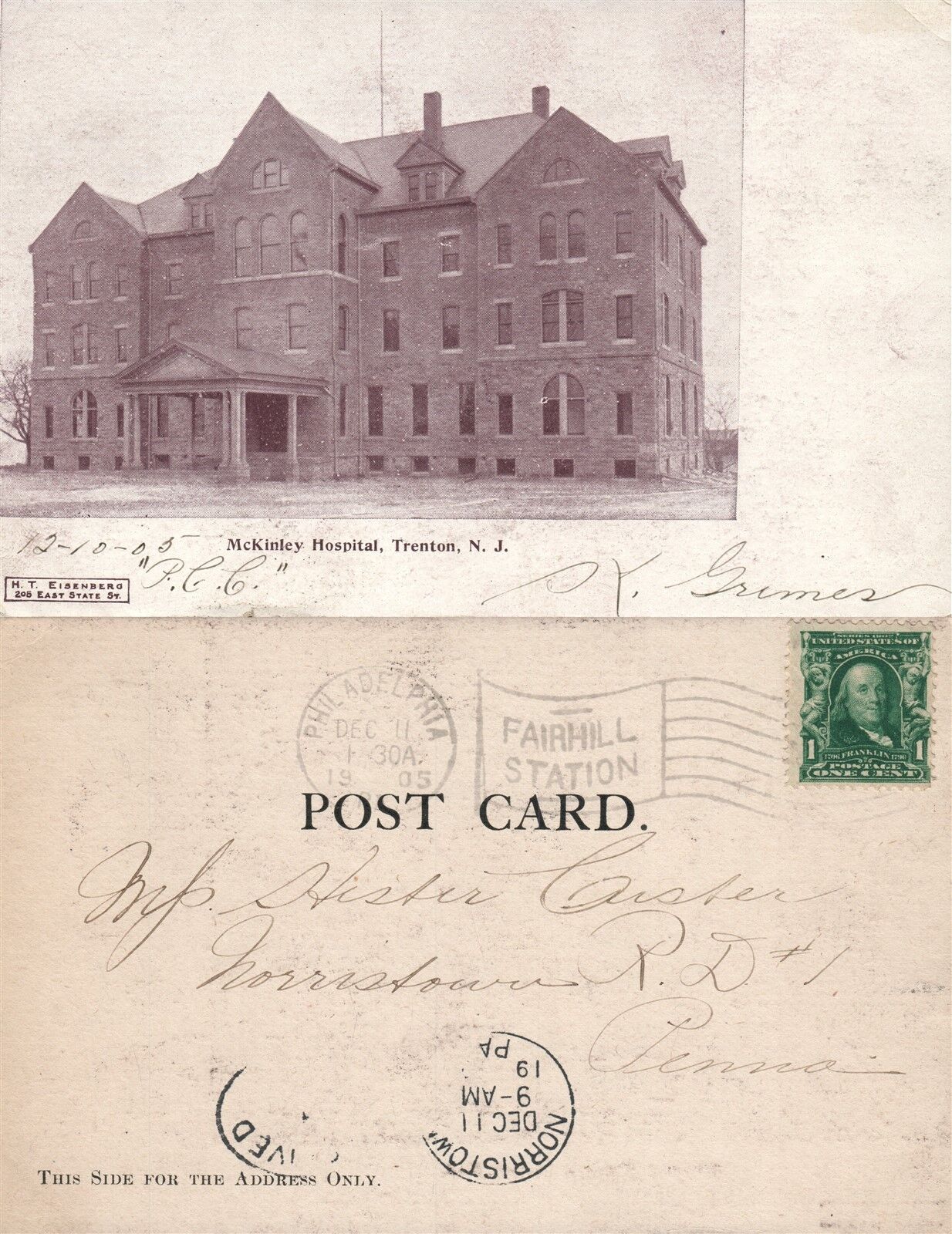 TRENTON N.J. McKINLEY HOSPITAL 1905 UNDIVIDED ANTIQUE POSTCARD