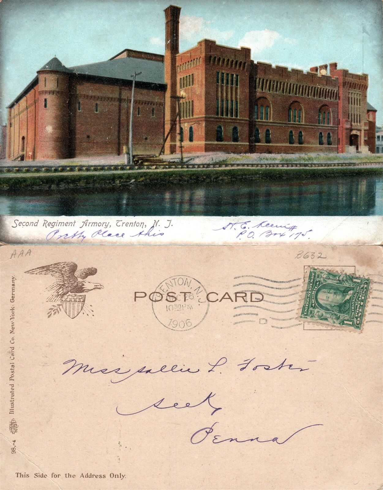 TRENTON N.J. SECOND REGIMENT ARMORY 1906 UNDIVIDED ANTIQUE POSTCARD