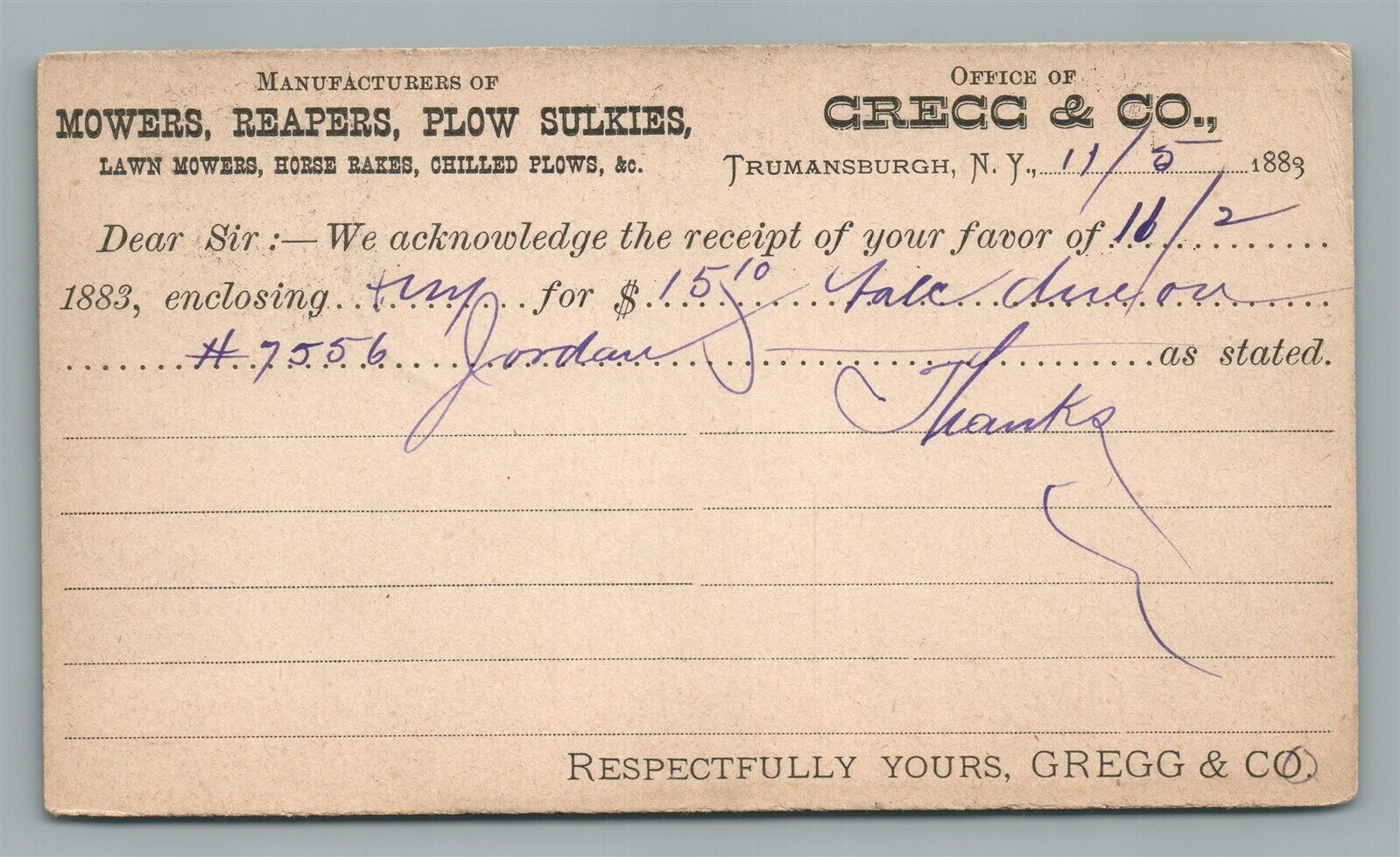 TRUMANSBURGH NY 1883 GREGG & CO. ANTIQUE POSTCARD STATEMENT CARD