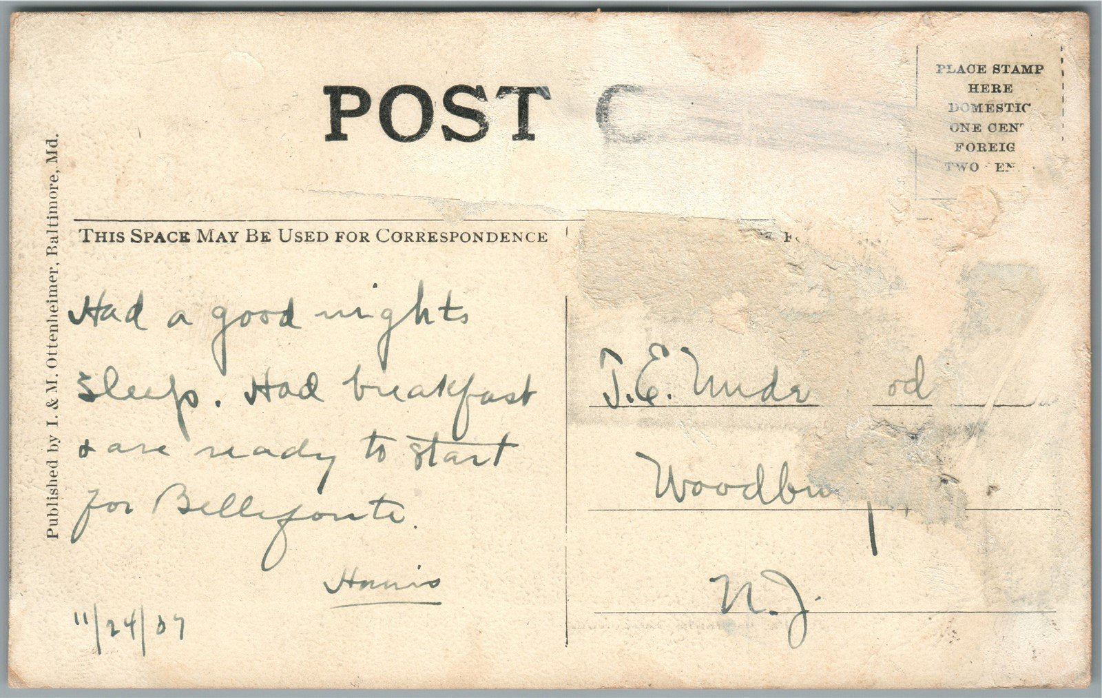 TYRONE PA LOOKING EAST FROM CEMETERY HILL ANTIQUE POSTCARD