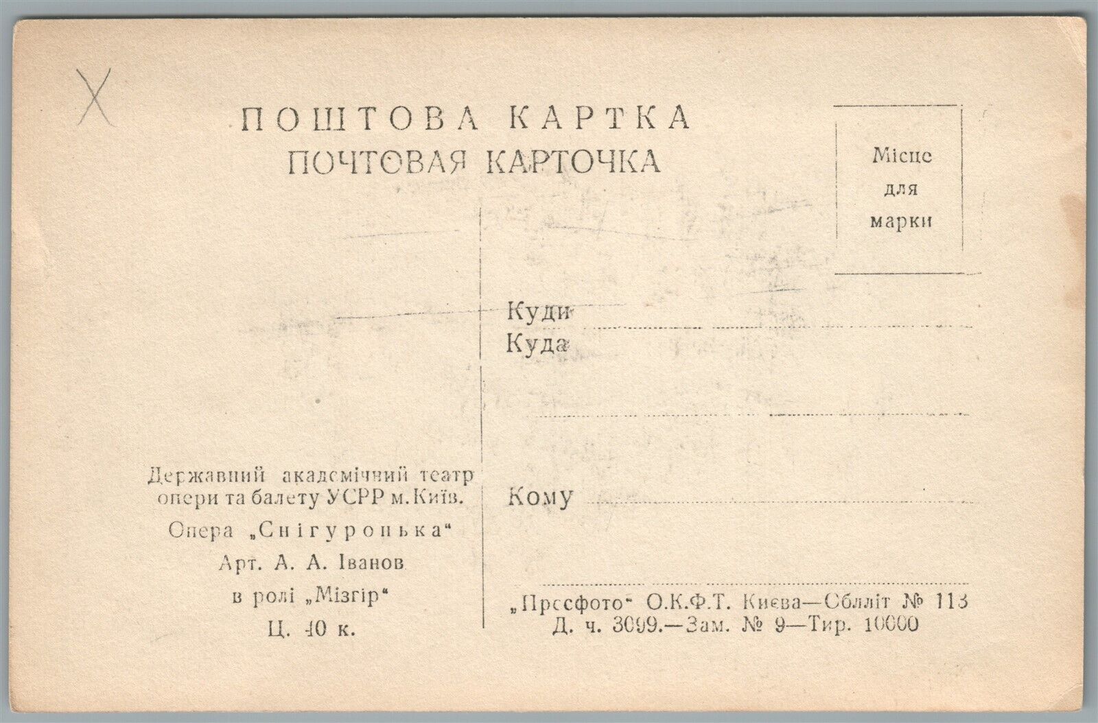 UKRAINIAN KIEV THEATRE OPERA SNOW MAIDEN ACTOR VINTAGE REAL PHOTO POSTCARD RPPC