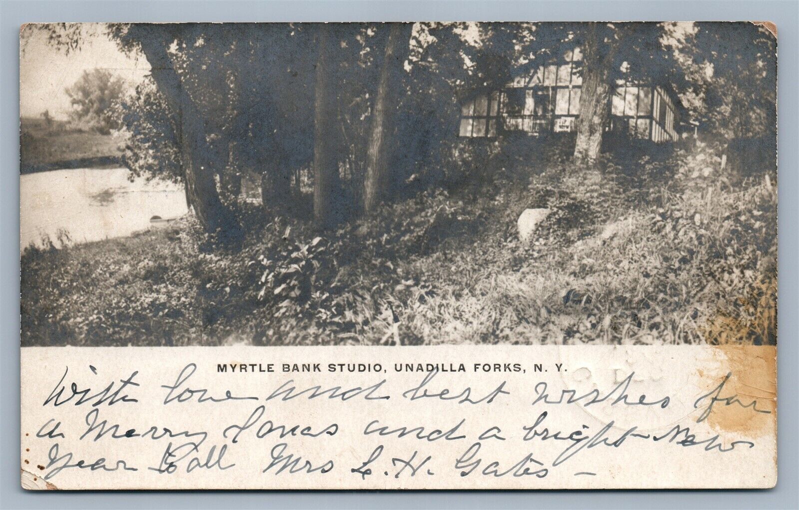 UNADILLA FORKS NY MYRTLE BANK STUDIO ANTIQUE REAL PHOTO POSTCARD RPPC