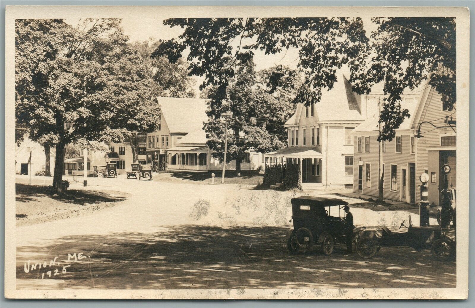UNION ME 1925 GAS STATION w/ OLD CAR ANTIQUE REAL PHOTO POSTCARD RPPC