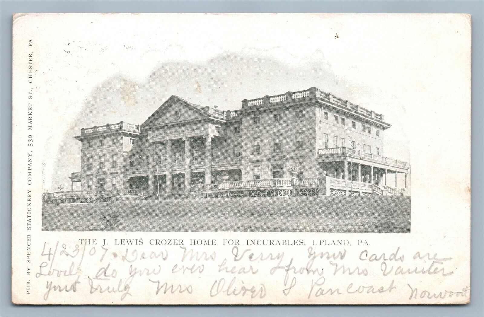 UPLAND PA J.LEWIS CROZER HOME FOR INCURABLES ANTIQUE POSTCARD w/ CORK CANCEL