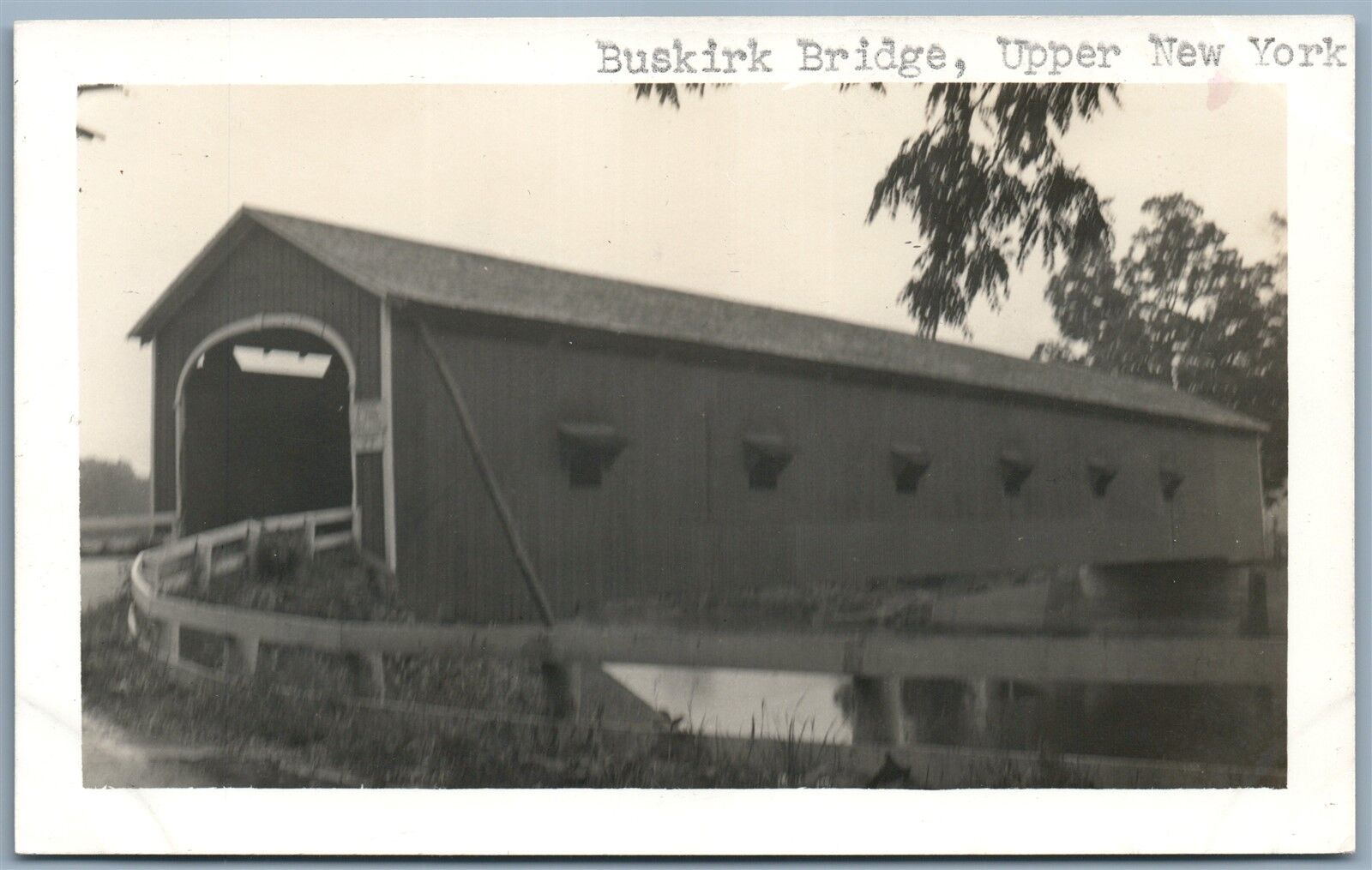UPPER NEW YORK BUSKIRK COVERED BRIDGE ANTIQUE REAL PHOTO POSTCARD RPPC