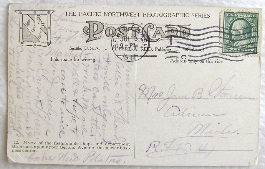 UPPER SECOND AVENUE BON MARCHE STORE SEATTLE WASHINGTON ANTIQUE 1911 POSTCARD