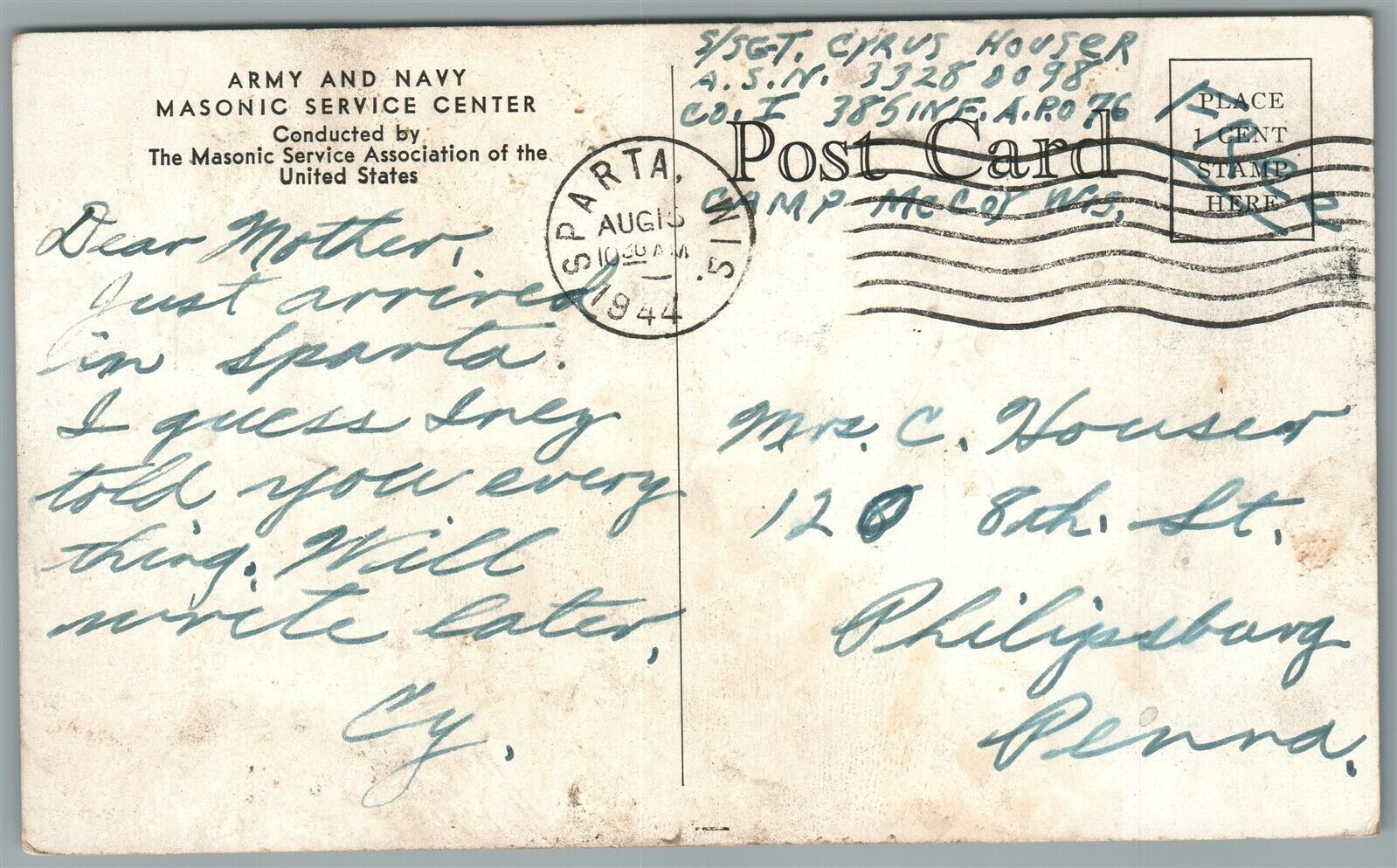 US ARMY & NAVY MASONIC SERVICE CENTER 1944 VINTAGE WWII POSTCARD