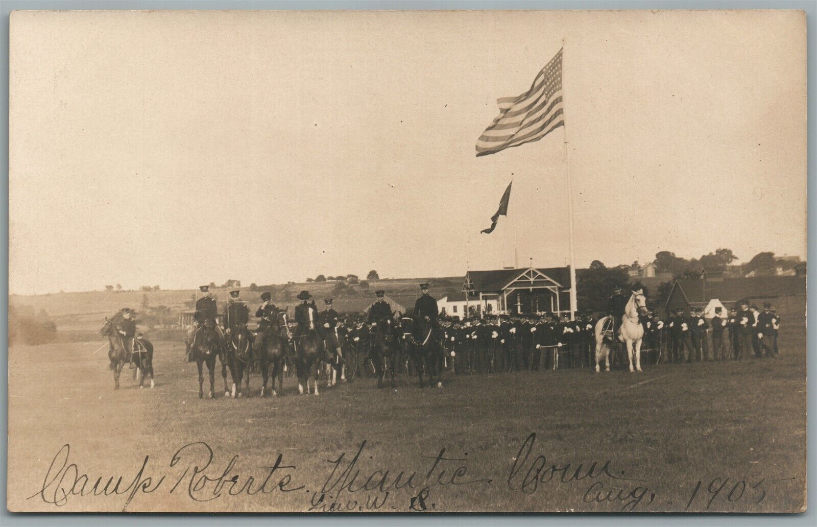 US CAVALRY w/ AMERICAN FLAG 1905 MILITARY ANTIQUE REAL PHOTO POSTCARD RPPC