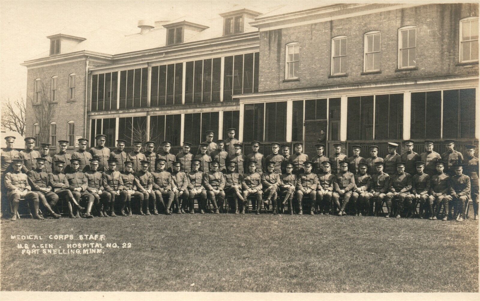 USA GEN. HOSPITAL STAFF FORT SNELLING MN ANTIQUE REAL PHOTO POSTCARD RPPC
