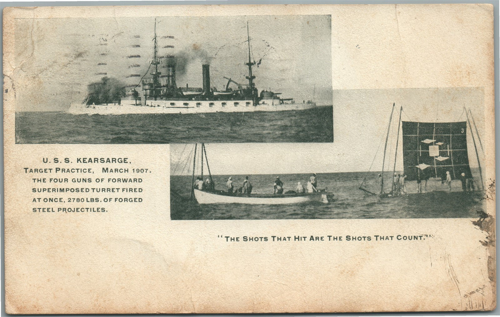 USS KEARSARGE SHIP TARGET PRACTICE 1907 ANTIQUE POSTCARD