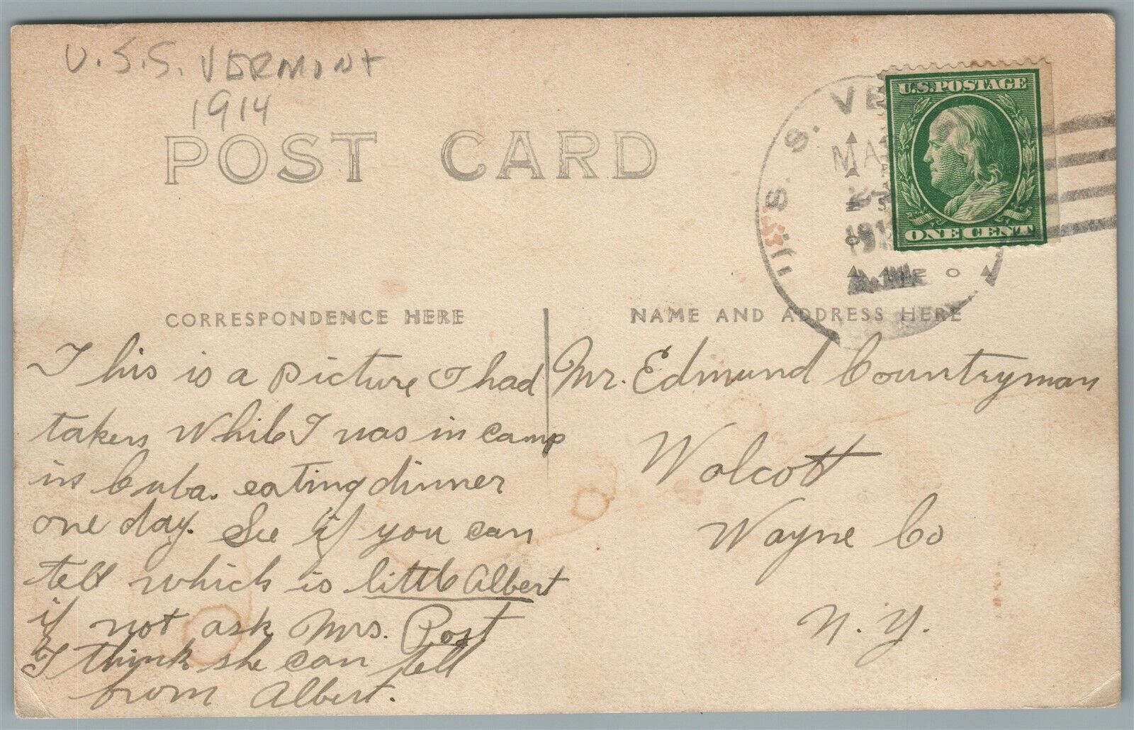 USS VERMONT CREW SAILORS in NAVAL CAMP 1914 ANTIQUE REAL PHOTO POSTCARD RPPC