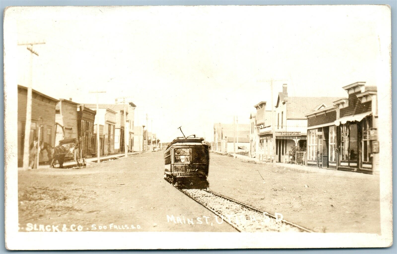UTICA SD MAIN STREET ANTIQUE REAL PHOTO POSTCARD RPPC TROLLEY