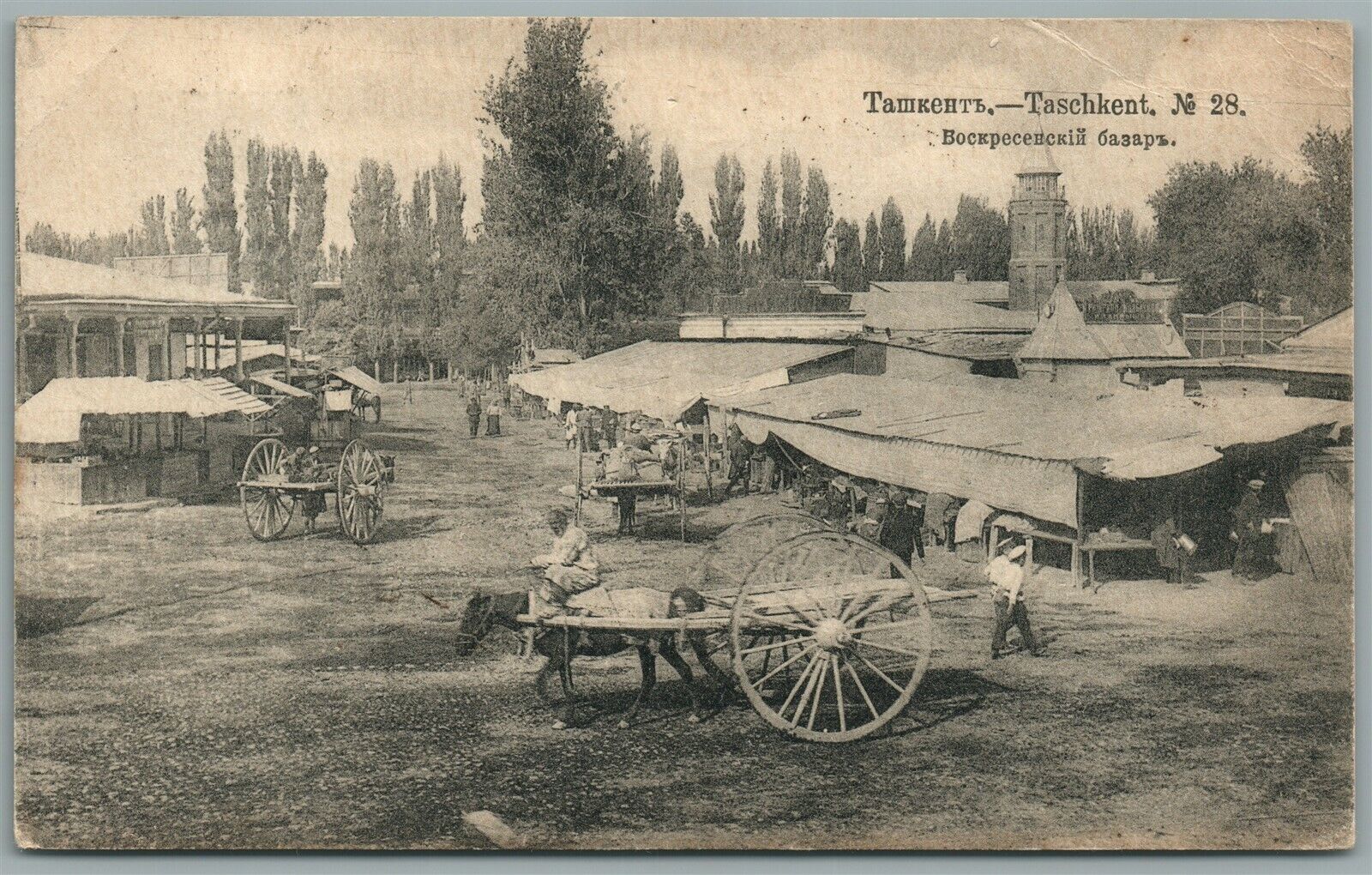 UZBEKISTAN TASHKENT VOSKRESENSKII MARKET ANTIQUE RUSSIAN POSTCARD w/ STAMP