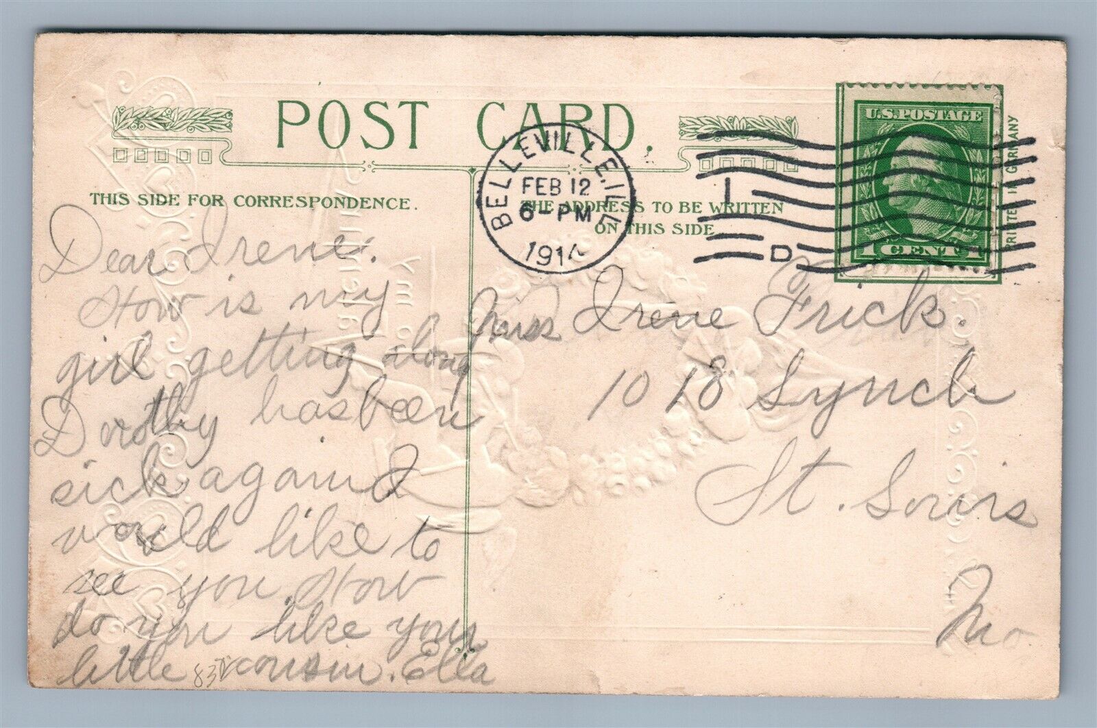 VALENTINE 1914 COPYRIGHT EMBOSSED ANTIQUE POSTCARD by JOHN WINSCH