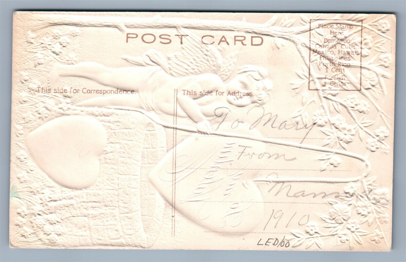 VALENTINE ANTIQUE EMBOSSED POSTCARD CUPID w/ HEART WELL