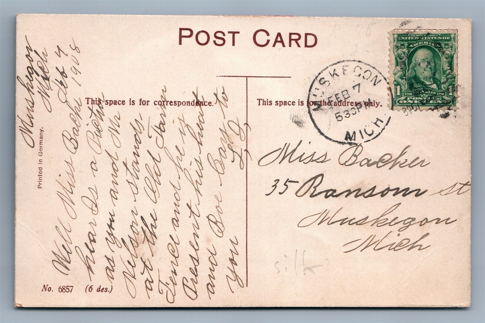 VALENTINE ANTIQUE POSTCARD COUPLE w/ SILK HEART