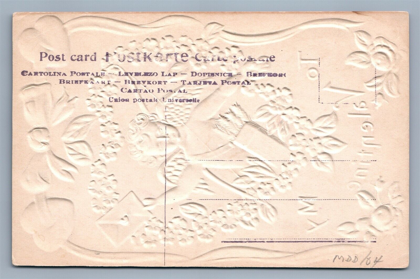 VALENTINE EMBOSSED ANTIQUE POSTCARD CUPID w/ LETTERS