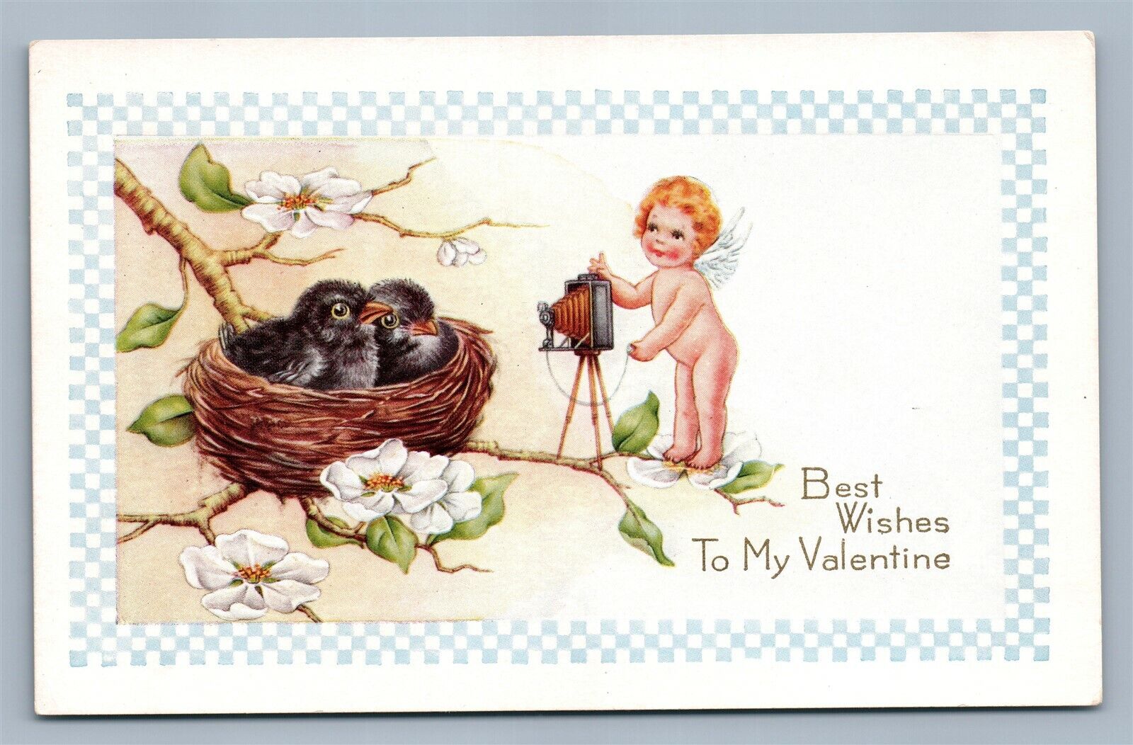 VALENTINE EMBOSSED ANTIQUE POSTCARD CUPID w/ PHOTO CAMERA