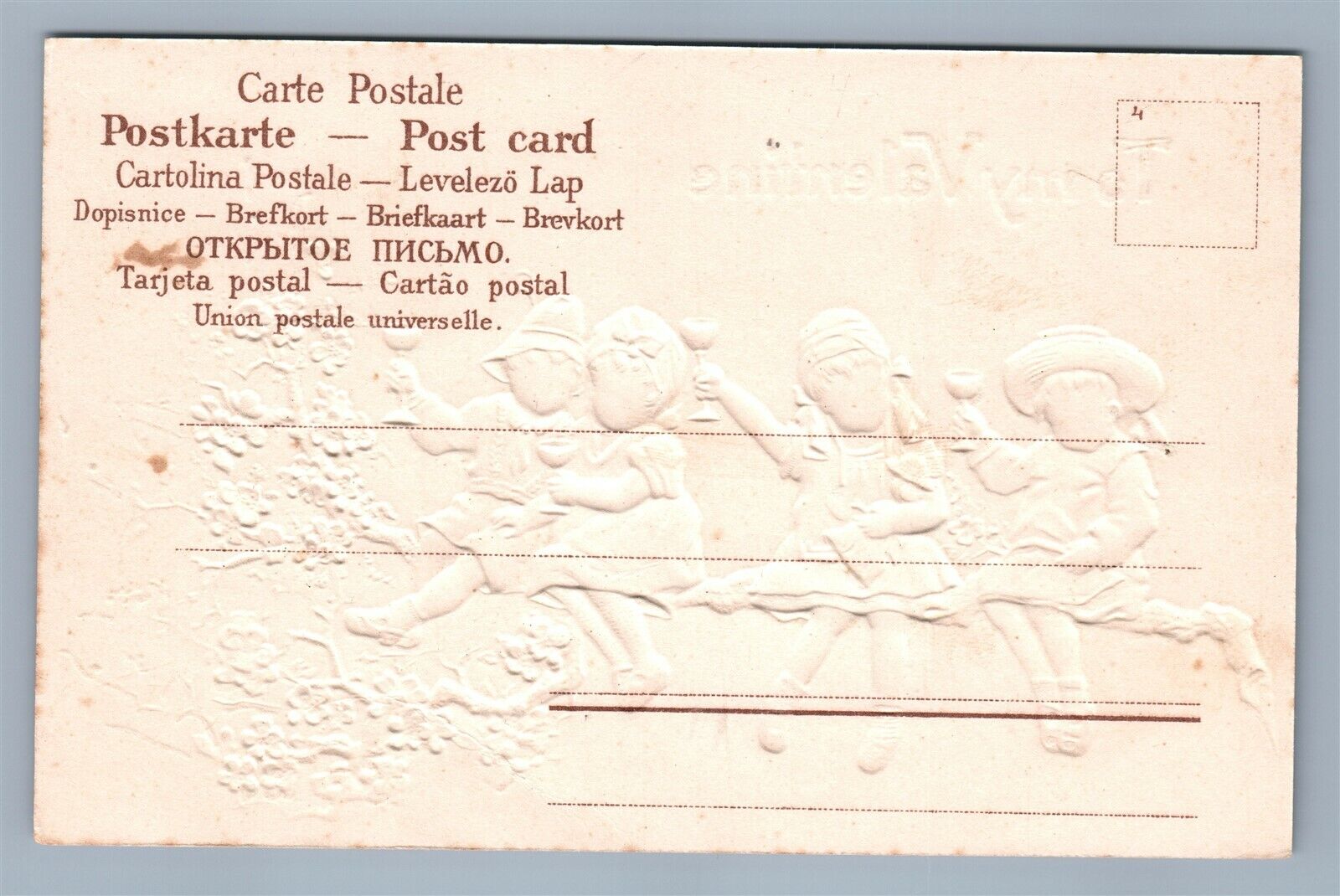 VALENTINE EMBOSSED ANTIQUE POSTCARD DRINKING KIDS