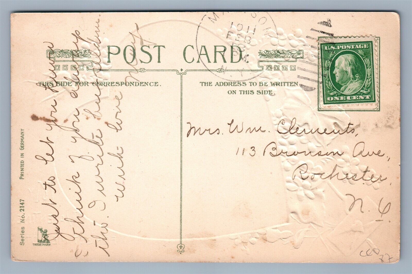 VALENTINE EMBOSSED ANTIQUE POSTCARD PRINTED ON SILK J.BAUMANN DESIGN 1910
