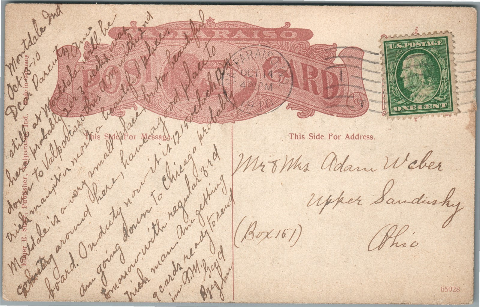 VALPARAISO IN CENTRAL BUILDING ANTIQUE POSTCARD