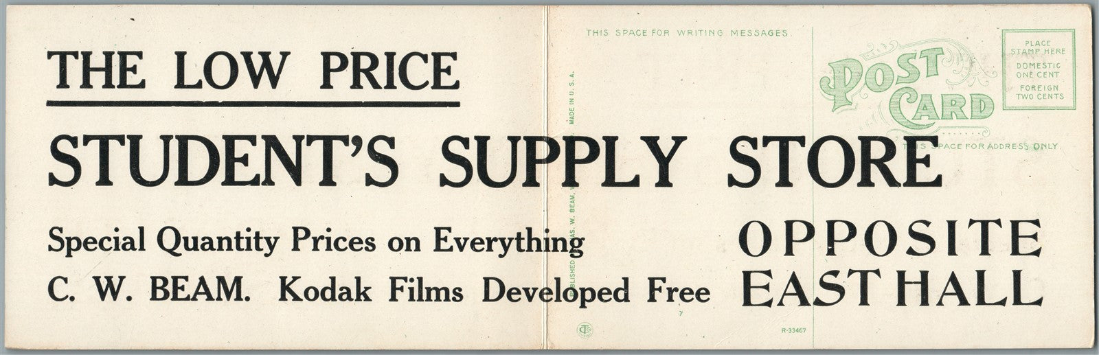 VALPARAISO IN UNIVERSITY SUPPLY STORE ADVERTISING DOUBLE ANTIQUE POSTCARD