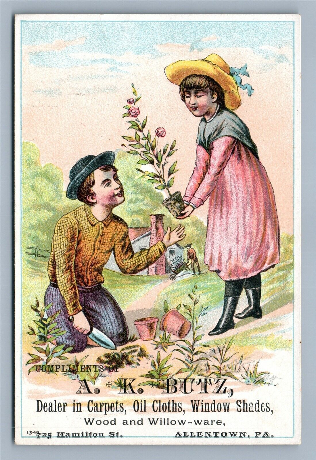 VICTORIAN TRADE CARD A.K.BUTZ CARPETS OIL CLOTHS WINDOW SHADES ALLENTOWN PA