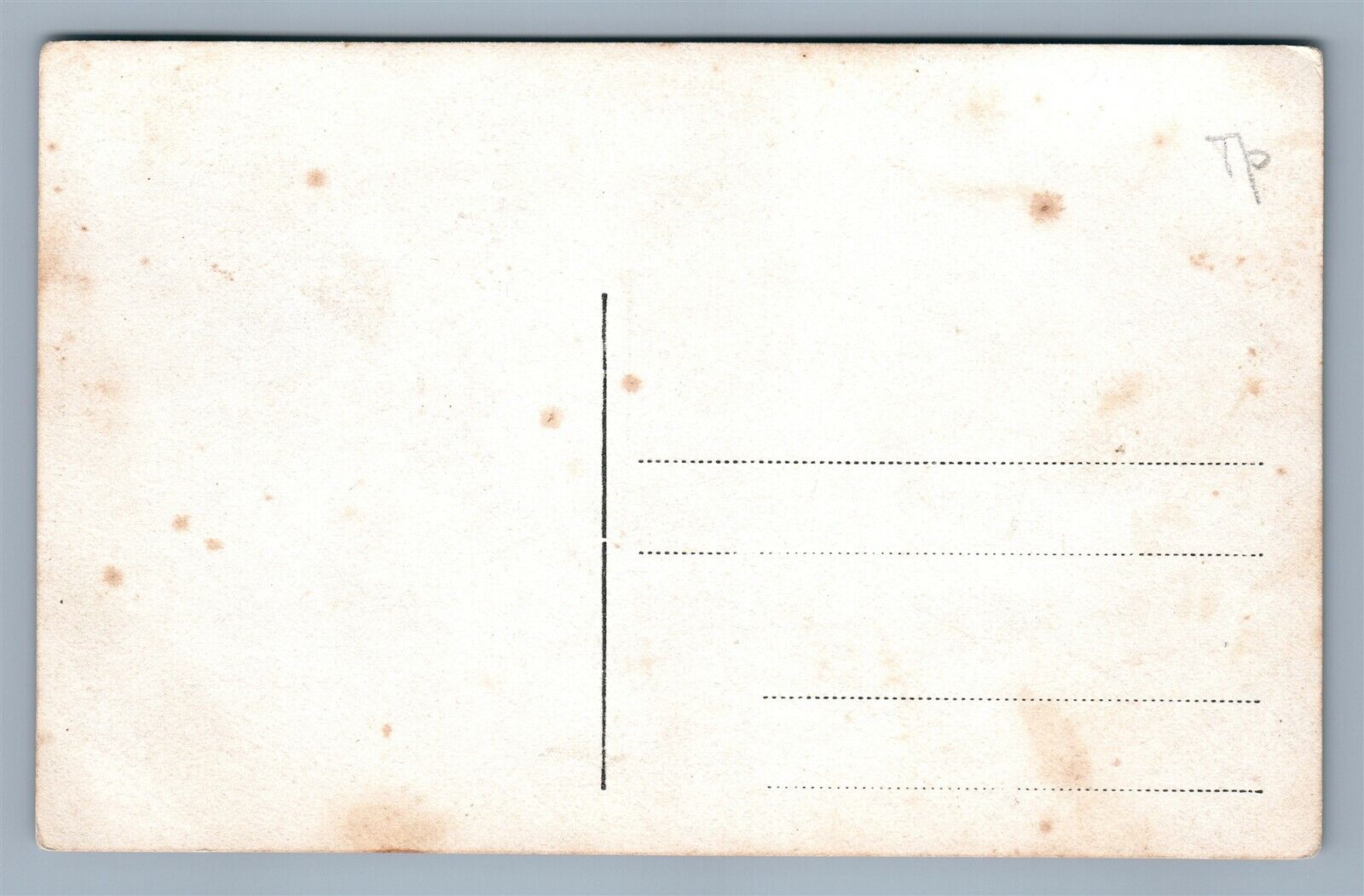 VILLAGE FAMILY w/ DOG & OWL MODELS ANTIQUE REAL PHOTO POSTCARD RPPC