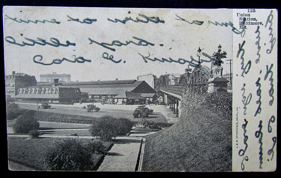 VINTAGE 1907 POSTCARD - UNION STATION BALTIMORE MD railroad train railway