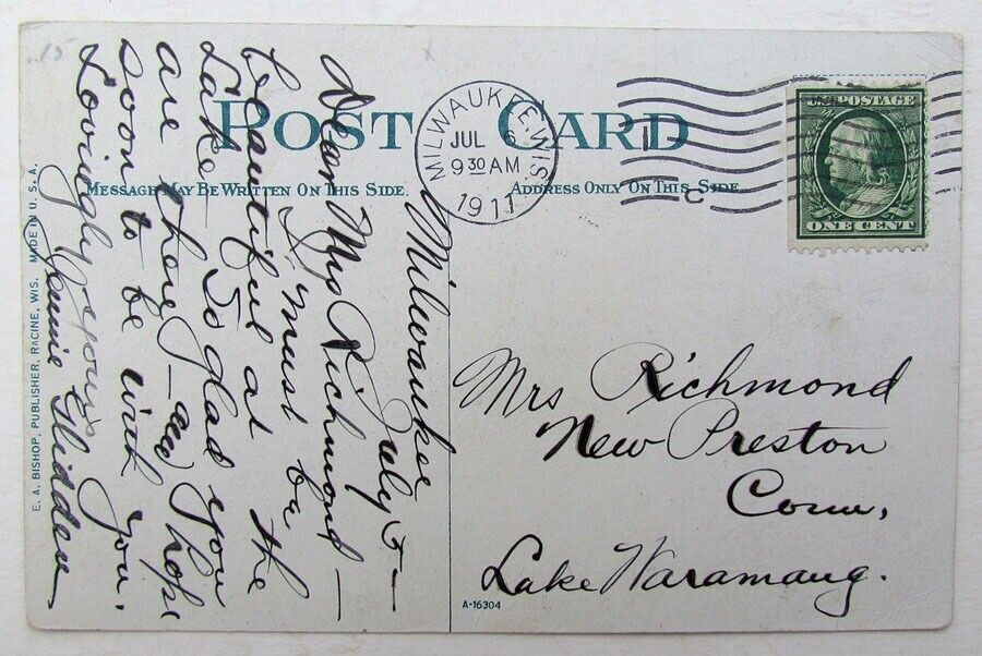 VINTAGE 1911 POSTCARD JUNEAU PARK C. & N.W. Ry. STATION MILWAUKEE WIS. railroad