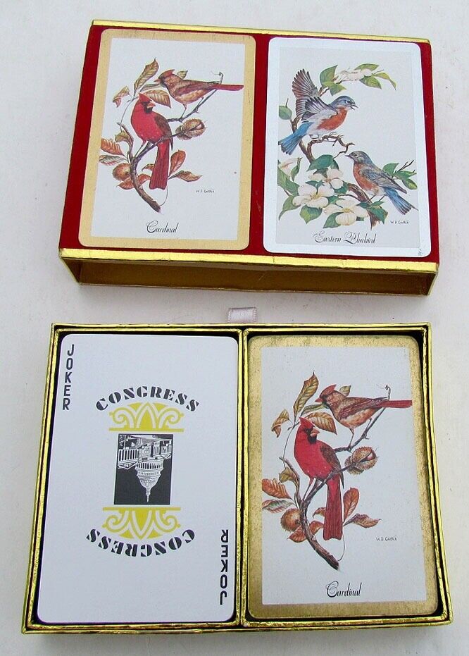 VINTAGE DOUBLE DECK OF CONGRESS PLAYING CARDS w/ BOX - BIRDS BACK DESIGN