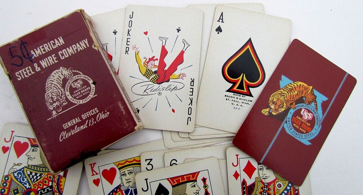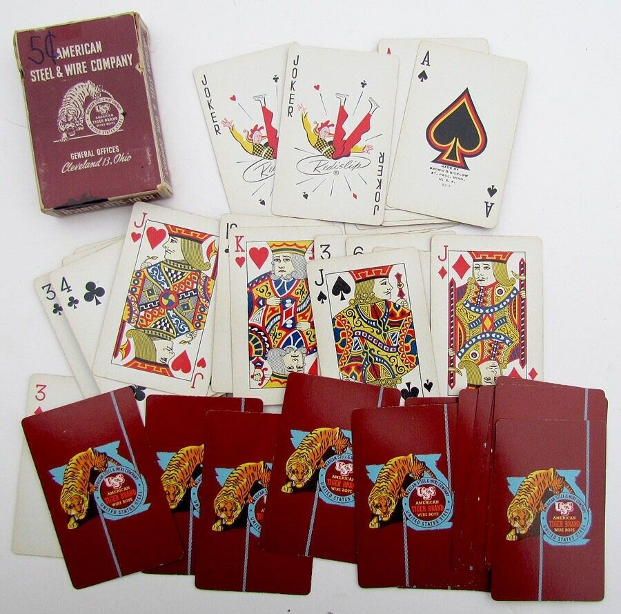 VINTAGE PLAYING CARDS DECK w/ BOX - AMERICAN STEEL & WIRE COMPANY TIGER BACK