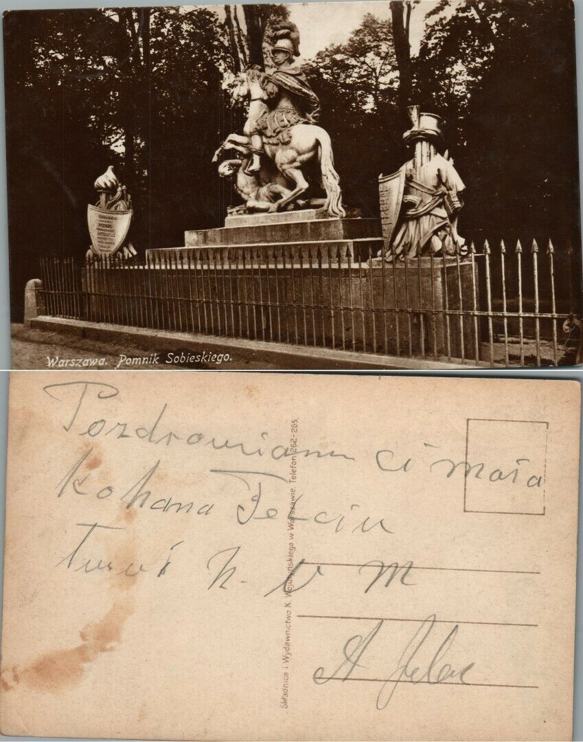 VINTAGE POLISH RPPC REAL PHOTO POSTCARD SOBIESKI STATUE WARSAW POLAND