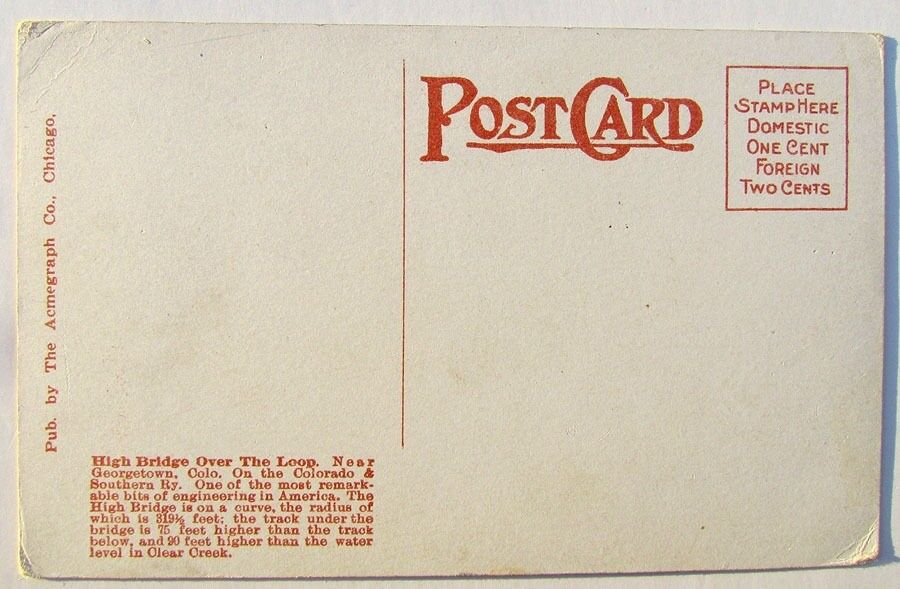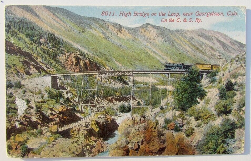 VINTAGE POSTCARD HIGH BRIDGE NEAR GEORGETOWN COLO. C.& S. railroad railway train