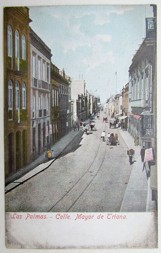 VINTAGE SPANISH POSTCARD LAS PALMAS CALLE MAYOR DE TRIANA STREET SCENE