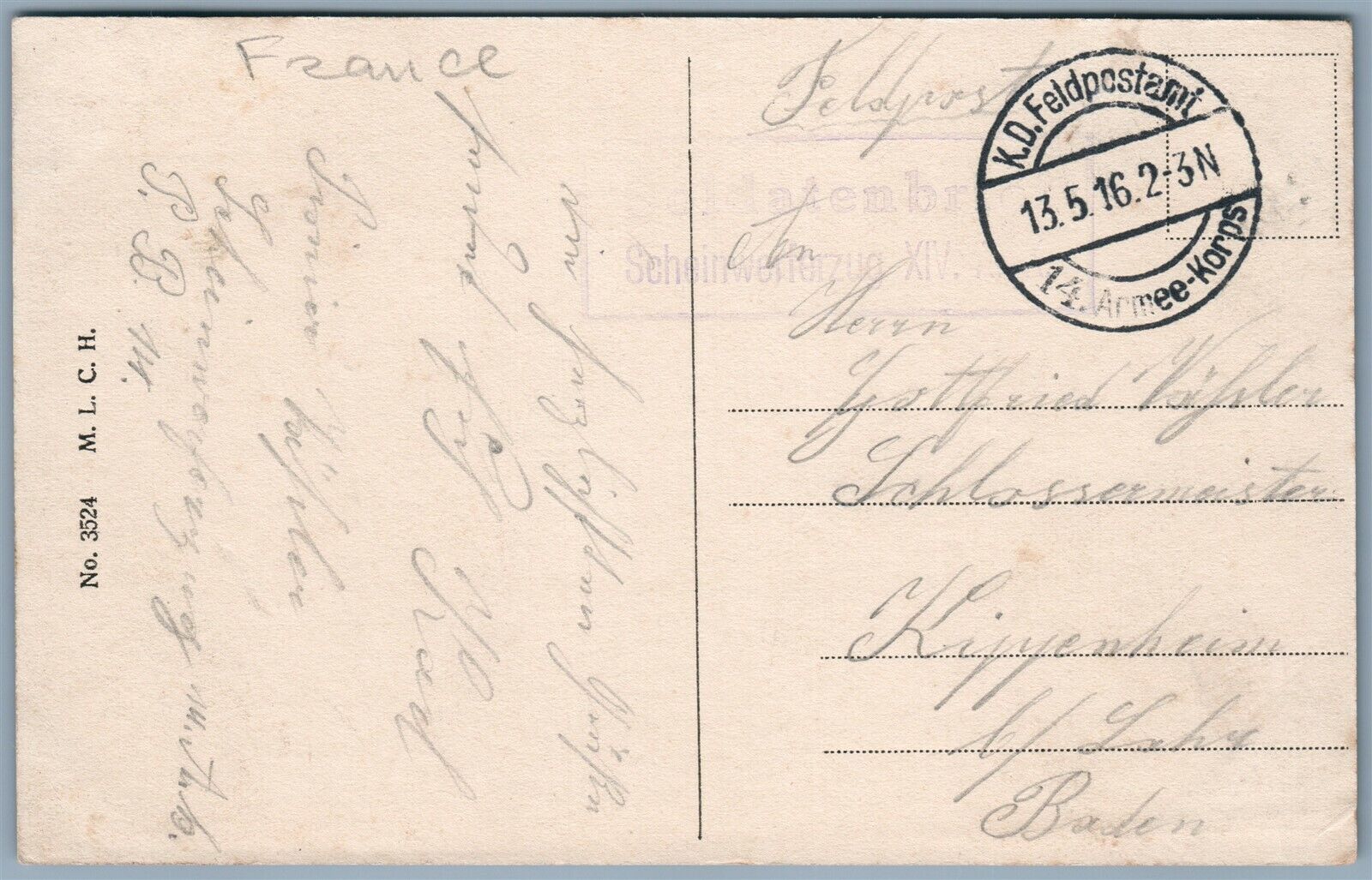 VOUZIERS FRANCE KONIGSTRASSE 1916 FELDPOST GERMAN ANTIQUE POSTCARD