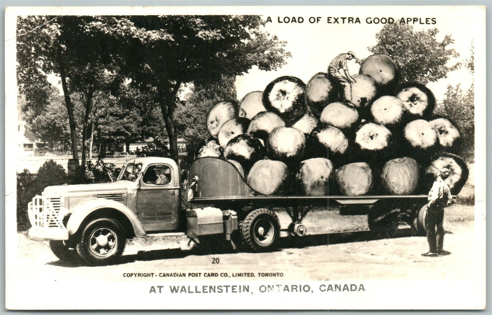 WALLENSTEIN ONTARIO CANADA EXAGGERATED APPLES on TRUCK VINTAGE REAL PHOTO RPPC