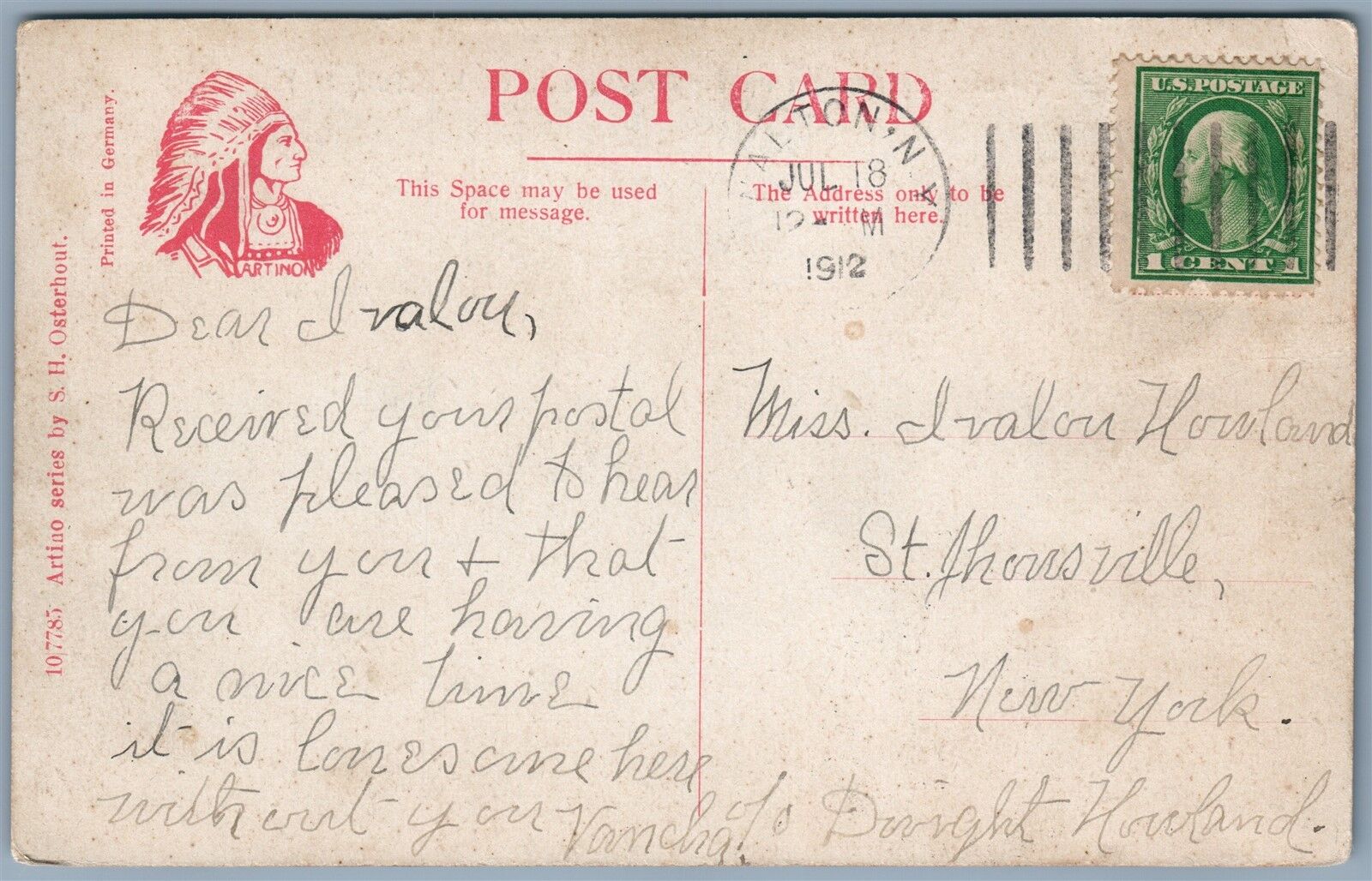 WALTON NY PRIVATE BOAT LANDING ON DELAWARE RIVER 1912 ANTIQUE POSTCARD
