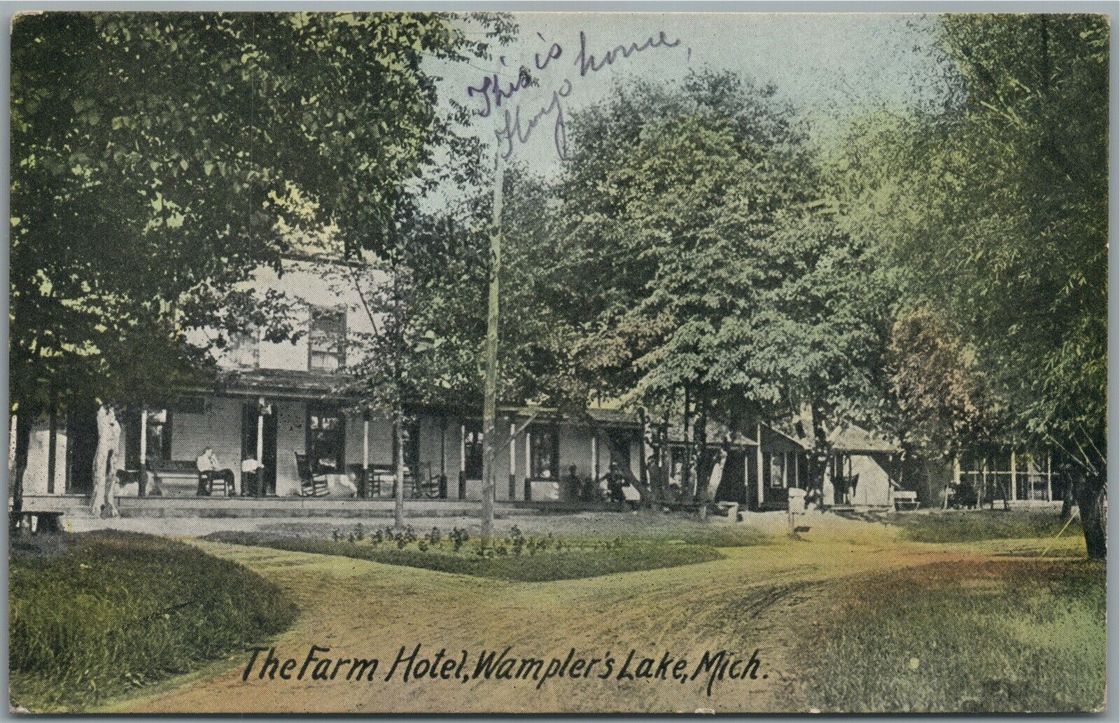 WAMPLER'S LAKE MI FARM HOTEL ANTIQUE POSTCARD