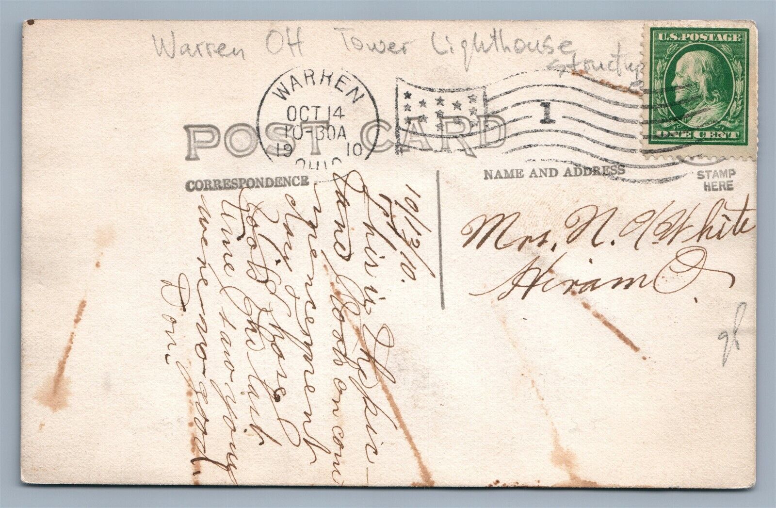 WARREN OH TOWER LIGHTHOUSE STRUCTURE ANTIQUE REAL PHOTO POSTCARD RPPC